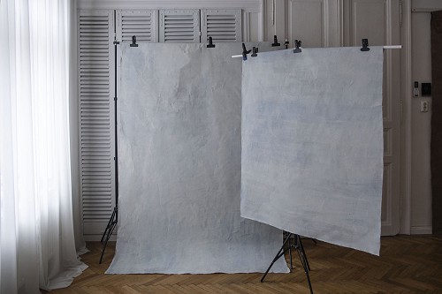 Két darab akvarell hatású, kézzel festett vászon háttér, gyönyörű világoskék és fehér színben. Minden háttér kézzel festett és egyedi, tökéletes újszülött fotósoknak, kismama vagy képzőművészeti képeknek, portréknak, termékeknek, csendélet fotózáshoz. A termék vadonatúj.